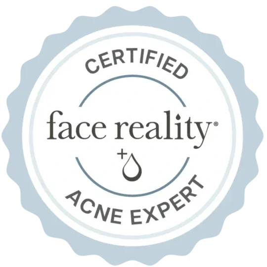 The Face Reality Acne Bootcamp is a comprehensive, personalized acne treatment program designed to clear even the most stubborn acne. It combines professional guidance from your Certified Acne Expert (hi hello that’s me!) with a customized home-care routine and regular treatments.